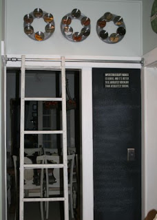 We were free to catch up on some little DIY projects this weekend. One was putting our vintage ladder on a sliding track to reach the spice loft.