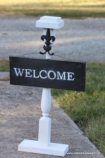 She also made a “Welcome” sign by printing out the size and font she wanted onto card stock and cut out a template. She spray painted the board black and after it had dried, attached her homemade stencil and began spraying it with white.
