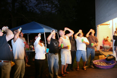 We only had two games, (see below) but there was participation and they were fun (I didn’t think the guys would go for the usual baby word scramble. (Although I love that game – I always win!) We also had some outdoor activities such as bad mitten (correction = badminton, who knew?), volley ball and bean bag toss. There was also a bon fire. It’s a little wimpy on the “bon” but it was perfect for roasting marshmallows after dark and in August…no one is interested in it for the heat, right?
