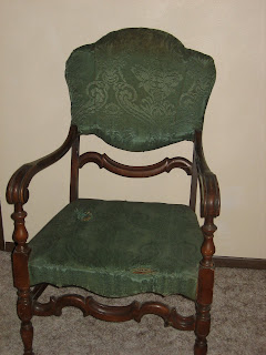 I love your chair! I recently bought one similar to yours, without the fancy scroll work yours has. I got a good laugh out of the 3,978 hours it took to take out all the tacks! I believe it took me at least that long (at least it seemed like that). Mine had old leather covered Nail Head tacks on top of the regular tacks! Who ever recovered those chairs to begin with must have gotten paid by the amount of tacks they used, hahaha! Great Job! Still working on mine, actually I have two of them. Lord help me!
