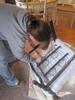 Since I have absolutely no idea what I was doing, this is how I cushioned the bottom seat. I had gotten a piece of foam from Garden Ridge for 6 bucks. Too bad it was too small. So I put a 3 dollar pillow over it. (Isn’t this how all the “professionals” do it!?)