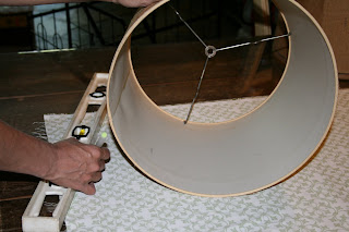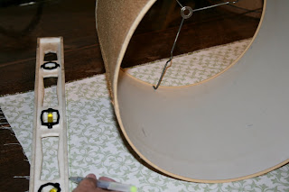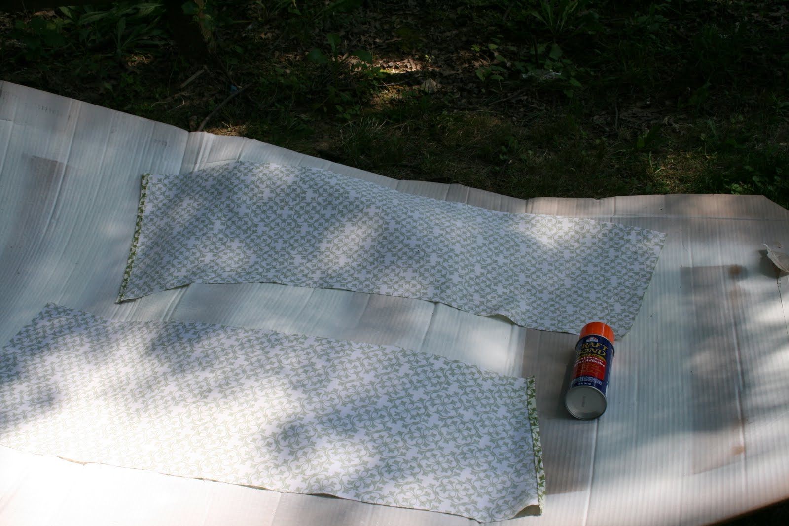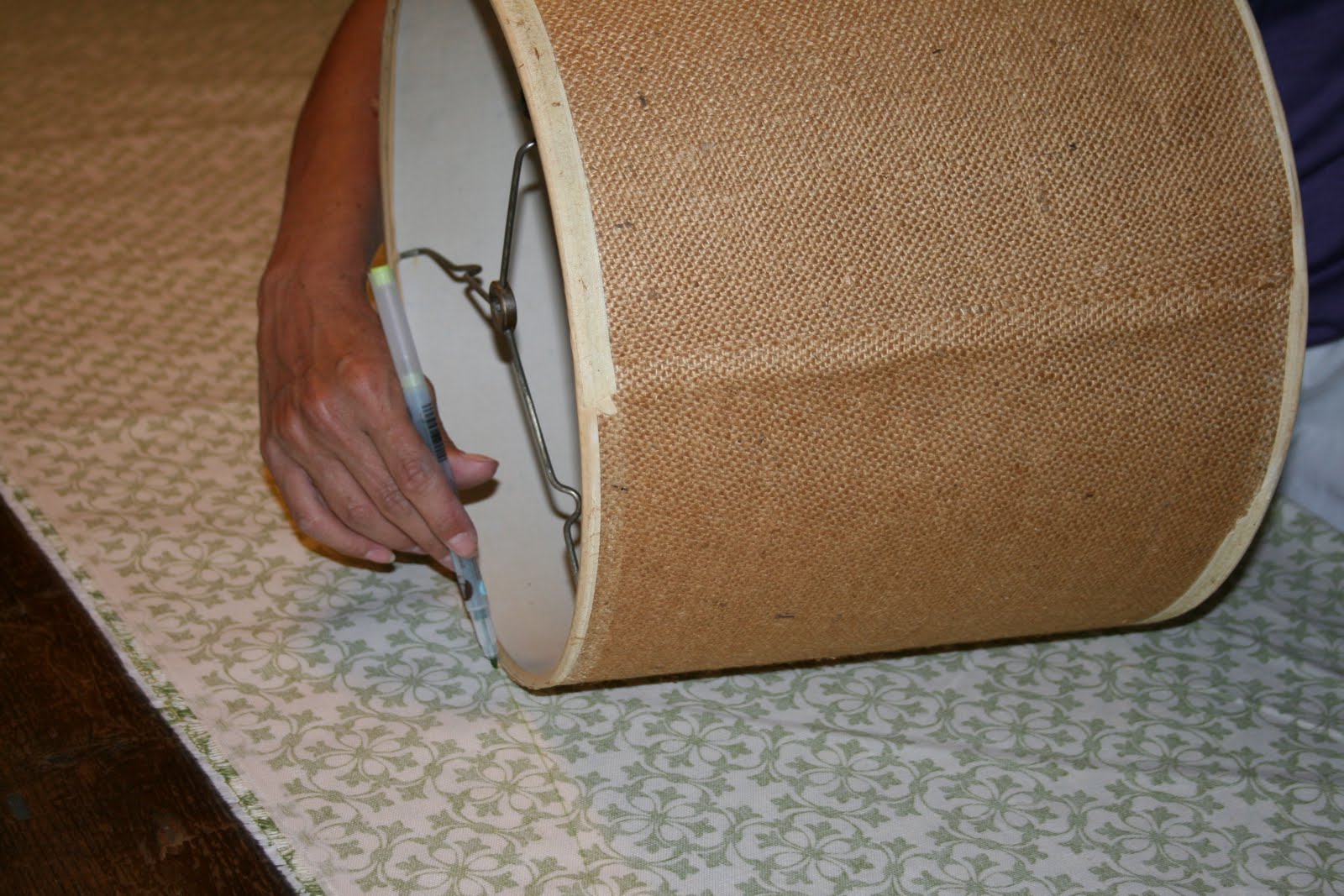 Next, we used spray adhesive to attach the fabric to the lamp shade.