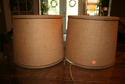 I have so many DIY projects planned and can’t wait to actually get busy and share. For this week, I have a little one. My daughter, Bri, and I gave some old lamp shades a new look. I loved the burlap texture before (and seriously considered buying her new ones so I could snag these but I didn’t get around to it in time. Darn!) Her style is different so here is what we did.