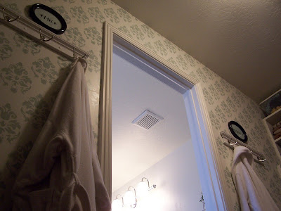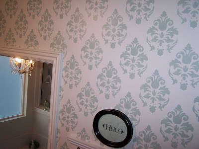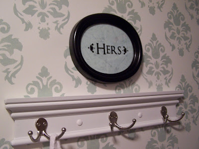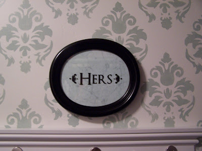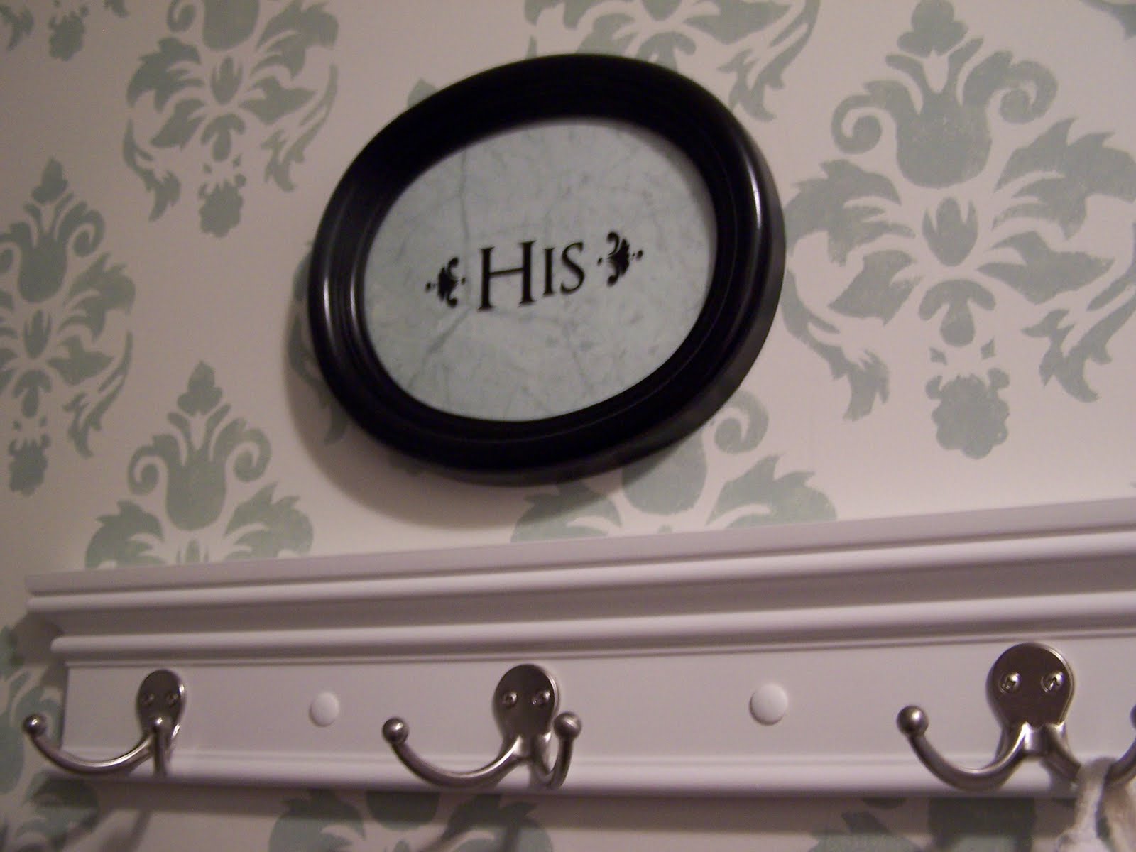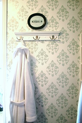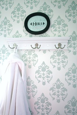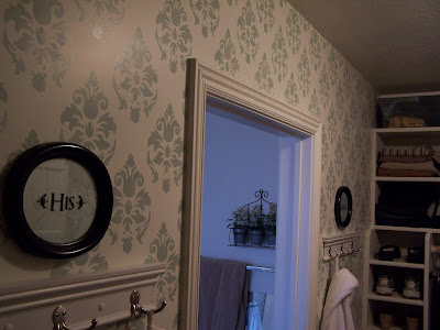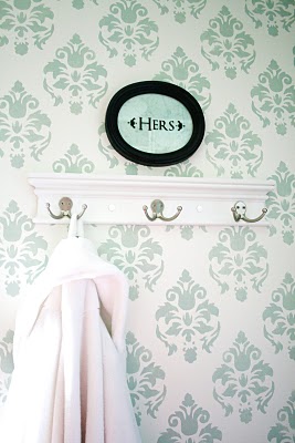 Gorgeous! I love the stenciled wall, and the little 'his' and 'hers' signs. So cute. It all looks so clean and organized and efficient.