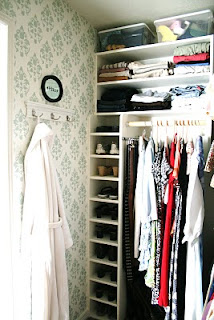 Roeshel, I love Rhonda's closet and all her shoe shelves! I just posted my closet,although I did it many years ago and I don't have a before photo 🙁 I used to be a closet designer, so if you need help designing yours, I would love to help you! Just let me know! Have a great weekend!