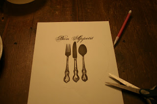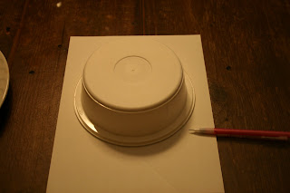 I found a bowl that was the right shape of the flat part of the plate. I traced the image on the clear mailing label (centering around the image) and cut it out.