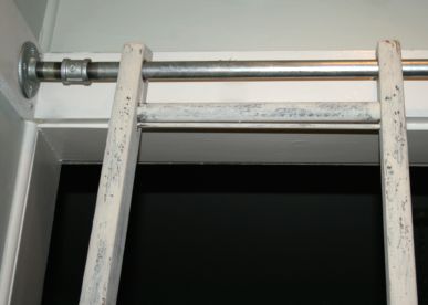 We were free to catch up on some little DIY projects this weekend. One was putting our vintage ladder on a sliding track to reach the spice loft.