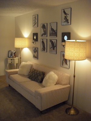 She talks about her gallery wall more in depth on her blog along with more fabulous DIY projects, inspiration and design boards.   It was completely DIY. She was lucky enough to get a discarded copy of Audubon’s birds of America and with a little cutting, framing and arranging, her bird wall was born.