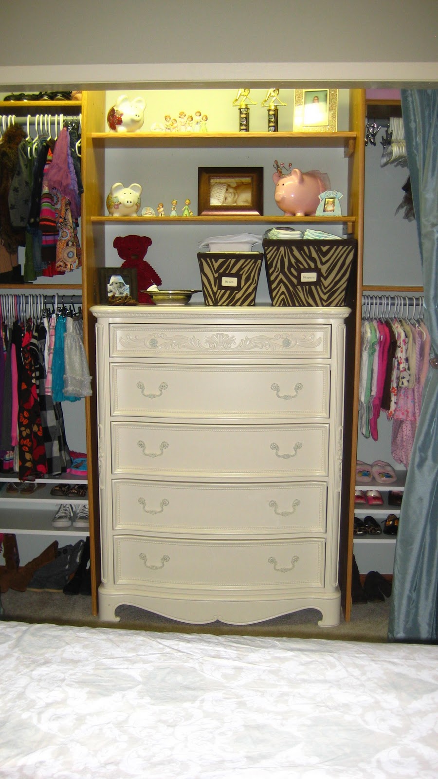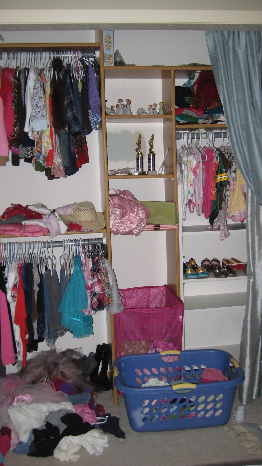 But two daughters became three daughters and more room was needed. The closet went from looking like this: