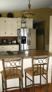I don't know which project I like more. They are all wonderful transformations. The kitchen looks amazing and the stenciled walls are well worth the time. They look great!
