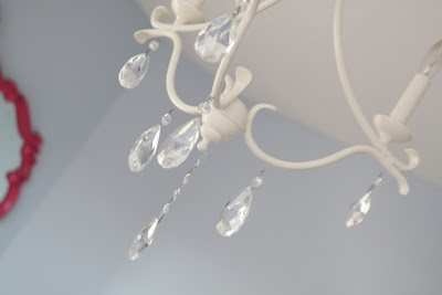 DIY lighting – she spray painted an old fixture from their dining room and added crystals with the help of her mom.
