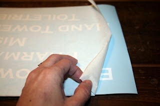 Place transfer paper over vinyl lettering. Smooth and rub.