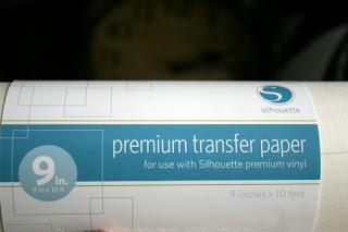Rub the transfer paper side with a credit card to transfer the vinyl from the blue wax paper side to the thin transfer paper.