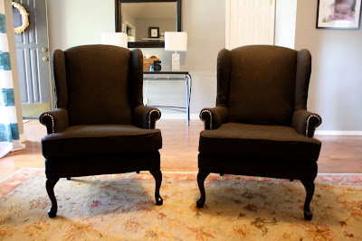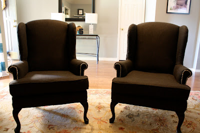 After much toil, tribulation… blood, sweat and tears, my Twinkie Wingbacks are finally finished and just waiting on you to come over and sit on them! They’ve actually been done for some time.. (story of my life, right?).. but I was hesitating on the nail head trim on the arms. Why, I don’t really know. I think I was nervous that they wouldn’t turn out right. But I love it! Perfect? No. But I challenge you to come to my house and find any project that I’ve taken on and call it perfect. 🙂