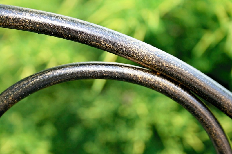 I fixed up the bistro set I scored for $15 at a yard sale. It’s painted to match our existing patio furniture for extra seating under the grape arbor.