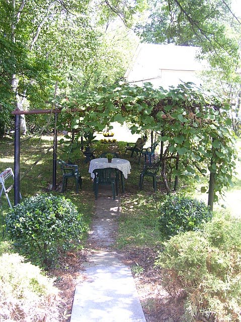 First, here was the grape arbor when we bought the house. Quite a rustic eyesore but potential beauty in those old vines regardless and a 50 foot mostly shaded area not to mention tons of grapes!