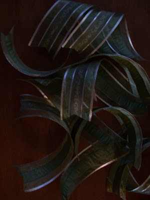 - stiff or wired ribbon (I used about 35 feet, thick wired ribbon works best and will save you time)