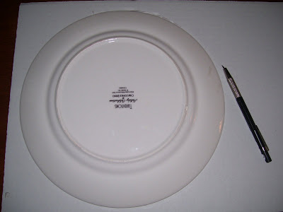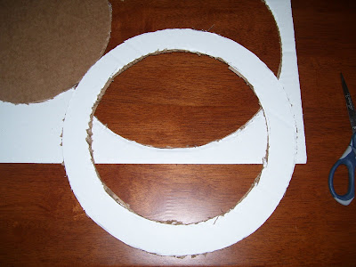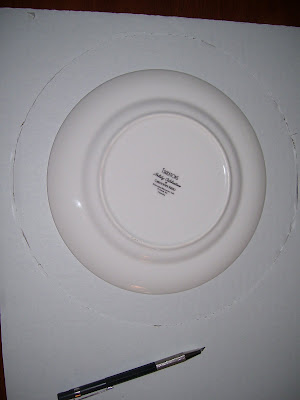 Instructions & tips: Trace a dinner plate (or your preferred circle for wreath size) on a piece of cardboard with an Xacto knife. You can also trace and cut out with scissors, but that’s a little more difficult. Trace a smaller sized salad plate inside the bigger one: