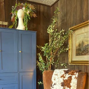Just now noticing it needs a wipe down from assembly smudges. lol BUT seriously, I love the deep blue color against the warm wood tones in this room. It adds storage, function, and a finished look without feeling bulky.