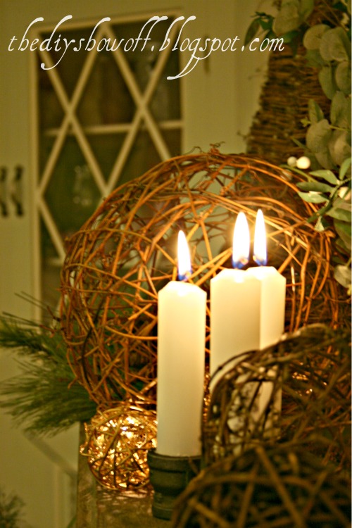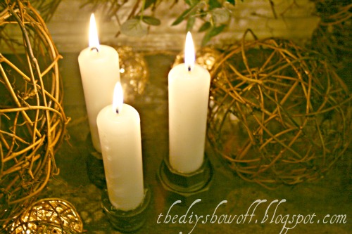1. I gave my wooden candlesticks a few coats of Patio Paint each. Because I didn’t sand the wood, I used a dry brush technique. I preferred an antiqued look. I let the candlesticks dry between coats.