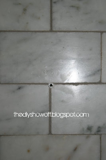 IN THE GROUT, mark where screws need to be for hanging.  Use a level to keep things straight.