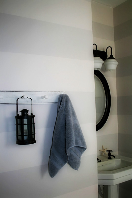 For us, painting the faucets updated the old vintage pedestal sink and kept the cost of our bathroom makeover down. Finding separate hot and cold faucets with their own spout was a challenge so painting the faucets worked for us. I do have to say…it’s rather odd having one spout for cold and one spout for hot. There’s no dilly-dallying washing hands under the hot spigot…ouch! Filling the sink is the only option for “warm” water. Strange, isn’t it?