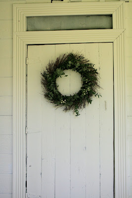 My husband framed the door and the wreath was on clearance at Joann Fabrics for $8.