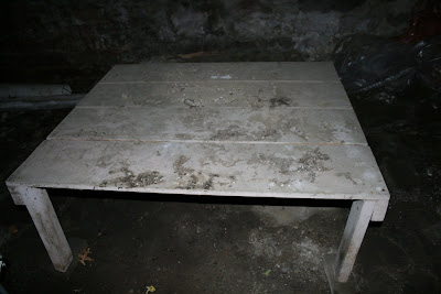 The tables looked liked this before. The first one was actually nailed to the back wall.