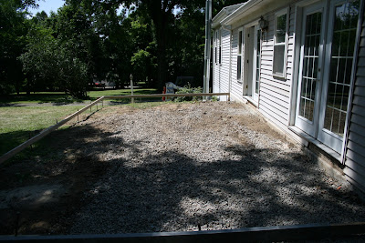 We took out the crumbling brick and concrete pavers that formed a broken floor on top of dirt, some broken glass and weeds. We added paneled siding to the back wall and painted (thanks to Butch for his help!). We poured a concrete patio (professionals did that part since it was a large area).