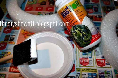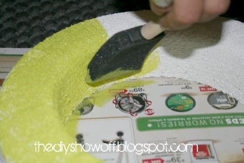 Apply Deco Art MagiKote to the Styrofoam wreath.