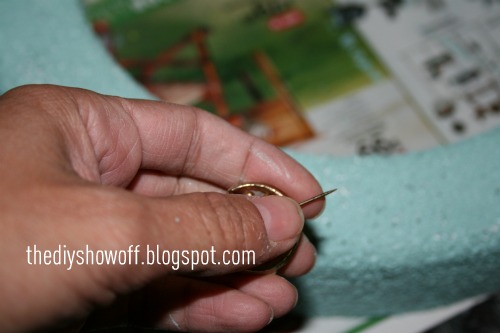 Use wire cutters to help when needed. Barrets, pins, earrings all have backing that can be used to secure to the styrofoam. Hot glue and straight pins will help too.